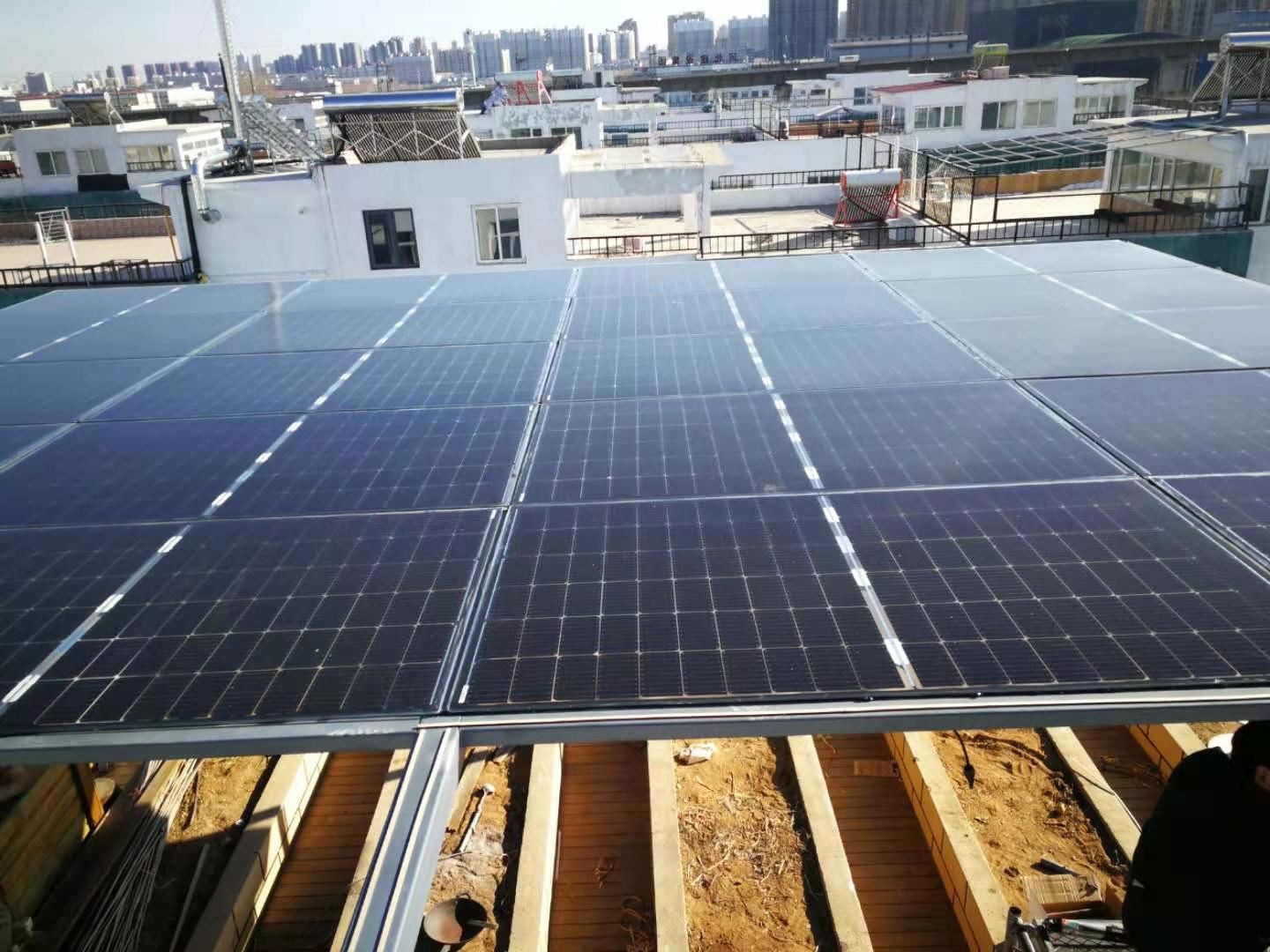 Echipamentele de bază ale unui sistem de generare a energiei fotovoltaice distribuite includ componente ale celulei fotovoltaice, consolele cu panou fotovoltaic, cutii combinate de curent continuu, dulapuri de distribuție a curentului continuu, invertoare conectate la rețea, dulapuri de distribuție a curentului alternativ și alte echipamente, precum și dispozitive de monitorizare a sistemului de alimentare și dispozitiv de monitorizare a mediului. Modul său de funcționare este că, în condițiile radiației solare, modulul de celule solare al sistemului de generare a energiei fotovoltaice convertește energia electrică de ieșire din energia solară și o trimite la dulapul de distribuție DC prin cutia de combinare DC și este inversată de către invertorul conectat la rețea în alimentarea cu curent alternativ. Sarcina proprie a clădirii 39, surplusul sau puterea insuficientă este ajustată prin conectarea la rețea.